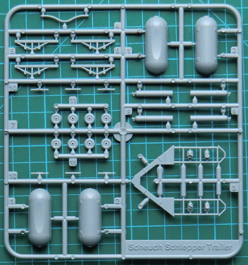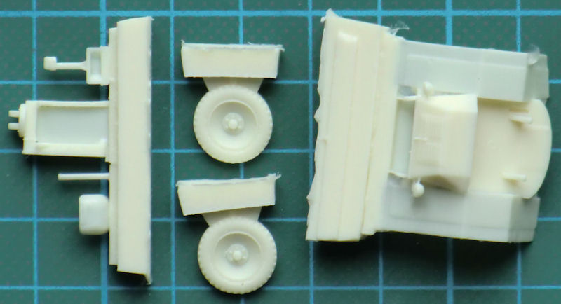 Ein zweiter Bausatz ist der Scheuchschlepper. Der entsteht aus Resin-, Fotoätz- und Spritzgussteilen. Die Detaillierung entspricht einem zeitgemäßen Kleinserienbausatz und interessant ist die Version des Schleppers mit den Luftkissen allemal.