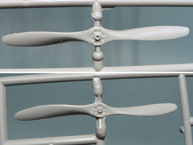 Zwei Propeller sind vorhanden: eine Eclair und eine Gremont. Dabei hat der tschechische Hersteller einen großen Fehler gemacht, da beide sich in der falschen Richtung drehen! Man kann ein Auge zudrücken oder sich neue selber zusammenbasteln.
