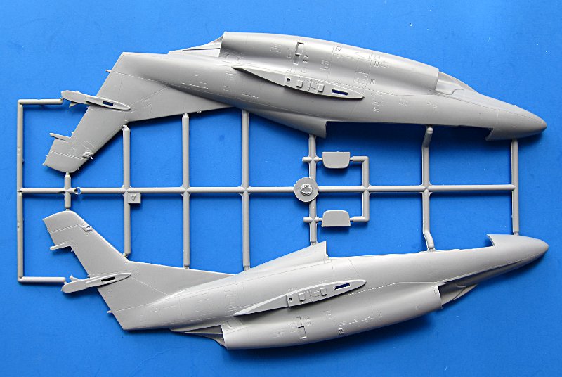 Alle Steuerflächen sind separat ausgeführt, so dass man diese auch ausgelenkt darstellen kann. Inwieweit dies bei der Buckeye bei abgestellten Maschinen üblich war, entzieht sich meiner Kenntnis. Die Lufteinläufe und Schubdüsen sind vielteilig und daher mit etlichen Klebefugen versehen. Hier wartet Arbeit auf den Modellbauer! TwoMikes hatten ursprünglich mal Zubehörsätze angekündigt, allerdings ist davon nie etwas erschienen.