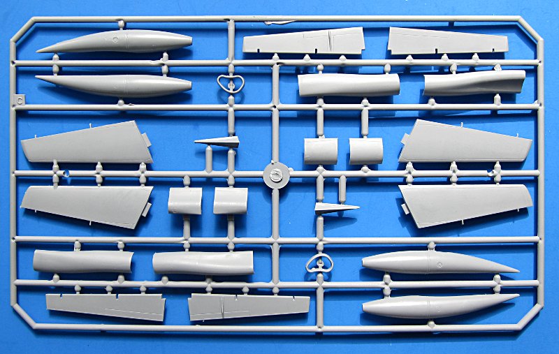 Der Bausatz wartet noch mit einer Überraschung auf, je nach persönlichem Geschmack positiv oder negativ. Die Kanzel liegt nämlich als Vaku-Teil bei. Natürlich erhält man so vorbildähnlichere Wandstärken und billiger als ein Spritzgusstool ist es sicher auch, andererseits ist das Heraustrennen und Verbauen solcher Tiefziehteile nicht Jedermanns Sache. Immerhin gibt es zwei Versuche.