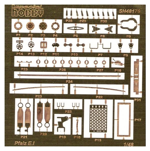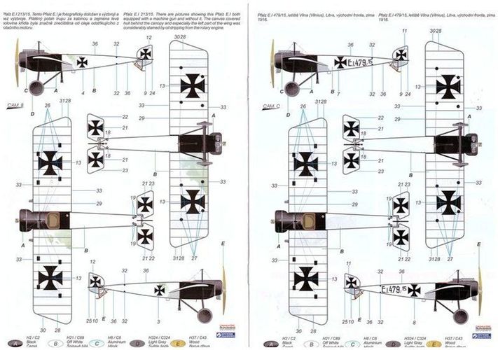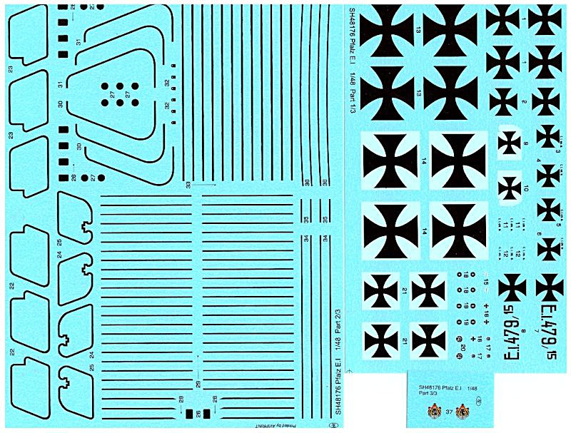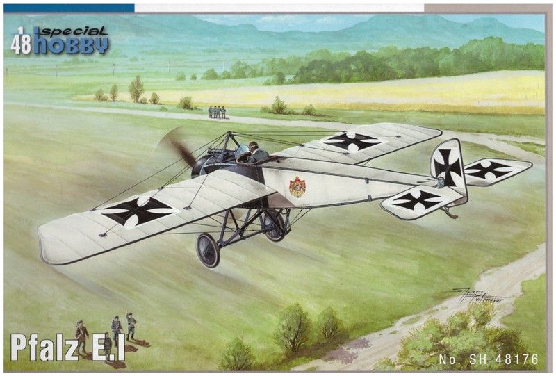 Bausatz: Er ist eine Wiederauflage des Gaviakits von 2006 und wird in einem stabilen Karton geliefert. Die zwei Plastik Giessäste sind sauber und filigran gespritzt. Es sind Teile für zwei verschiedene Versionen der Pfalz E.I vorhanden. Zusätzlich ist ein Ätzteilbogen beigelegt. Für die Cokpitverglasung ist Film vorgesehen. Der Bauplan ist übersichtlich und zeigt auch ausführlich die Verspannung dieses Flugzeuges.