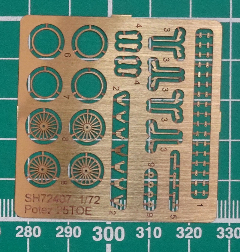 Bei den beiden Hauptfahrwerksrädern gibt es Alternativteile. Hier können die Speichenräder aus Fotoätzmaterial verbaut werden. Unterschiede gibt es bei dann auch bei der Achsaufnahme. Diverse Kleinteile aus Metall und Spritzguss sorgen für schöne feine Details. Die Verspannung der Potzez 25 wird in drei Zeichnungen schön gezeigt. Das dürfte die größte Herausforderung sein.