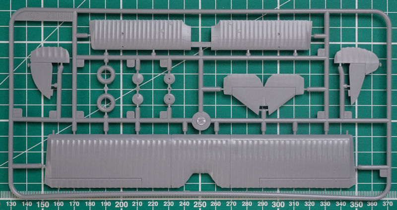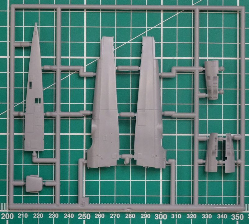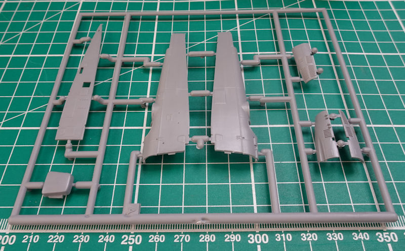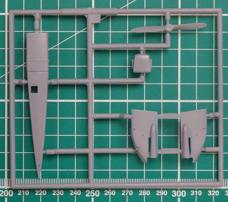 Den eigentlichen Rumpf hat special hobby in drei Teile zerlegt. Dadurch lässt sich die Rumpfunterseite leicht austauschen und so gibt es hier das bauchige Teil für die TOE-Variante. Die Tragflächenunterseite ist aus einem Teil. Für das Rumpfvorderteil werden acht Spritzgussteile verbaut.