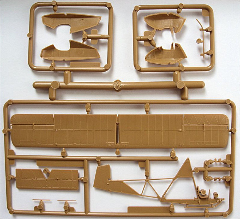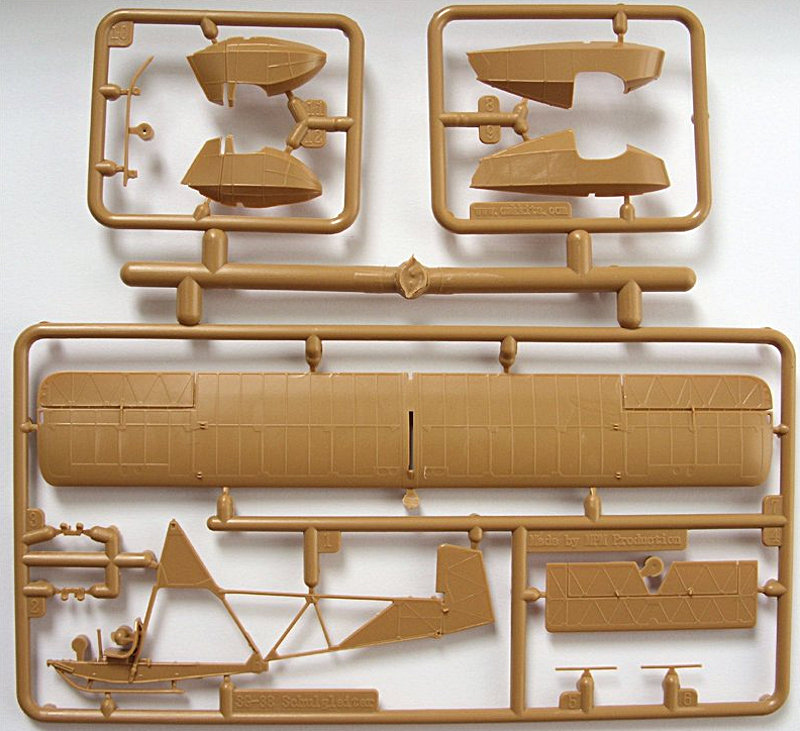 Bausatz: Nach KP hat nun auch Special Hobby einen SG 38 herausgebracht. Der Spritzling, der 2x vorhanden ist, besteht aus einem hellbraunen Plast, ist sauber abgespritzt und erlaubt den Bau aller Varianten des SG 38. Bei dieser Bausatzvariante werden aber nur die Teile für den "puren" SG 38 sowie das lange Boot verwendet. Der Rest wandert in die bekannte Kiste. Die Bauteile sehen filigran aus, das "Cockpit" ist schon fast komplett angespritzt, nur die Pedale werden hier noch montiert. Ein Pilot liegt leider nicht bei, bei den offenen Varianten wäre es schon schön gewesen, einen "Beherrscher der Lüfte" mit zu zeigen.