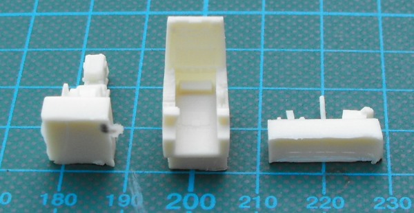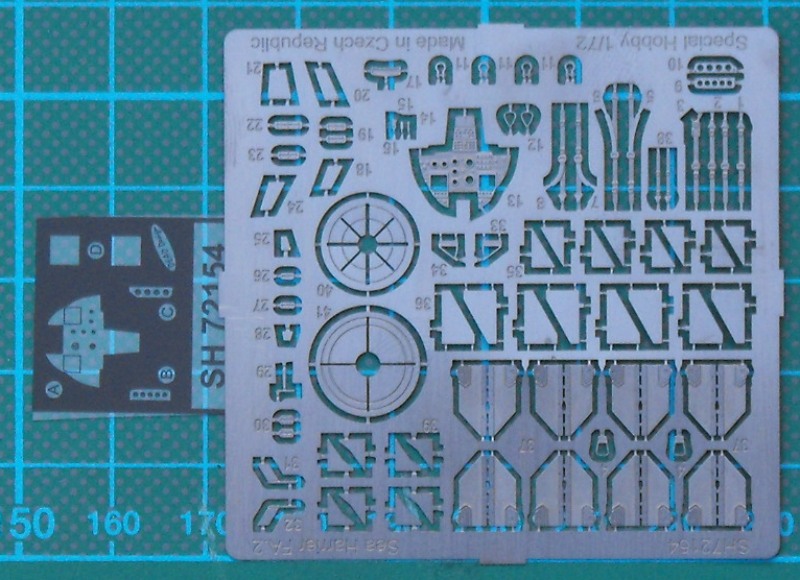Der Bau beginnt nunmehr mit dem Cockpit aus drei verschiedenen Materialien. Beim Schleudersitz werden die Sitzgurte aus Fotoätzteilen separat bemalt und aufgeklebt. Das Instrumentenbrett besteht aus Spritzgussmaterial auf das der zuvor bemalte Fotofilm und das ebenso bemalte Fotoätzteil geklebt werden. Das Ganze wird mit der Sitzwanne aus Resin komplettiert.