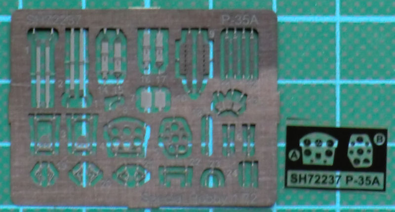 Bausatz: Special hobby brachte diesen Bausatz in gleich zwei Verpackungen heraus. So gibt es die schwedische J 9 und die P-35A in getrennten Kits. In der attraktiven aber unpraktischen Schüttbox befinden sich gut verpackt zwei hellgraue Spritzlinge mit 64 Teilen, ein Klarsichtrahmen mit sechs Teilen, fünf Resinteile, ein Fotofilm, ein Fotoätzteilbogen, die Decals und die typische Bauanleitung.
