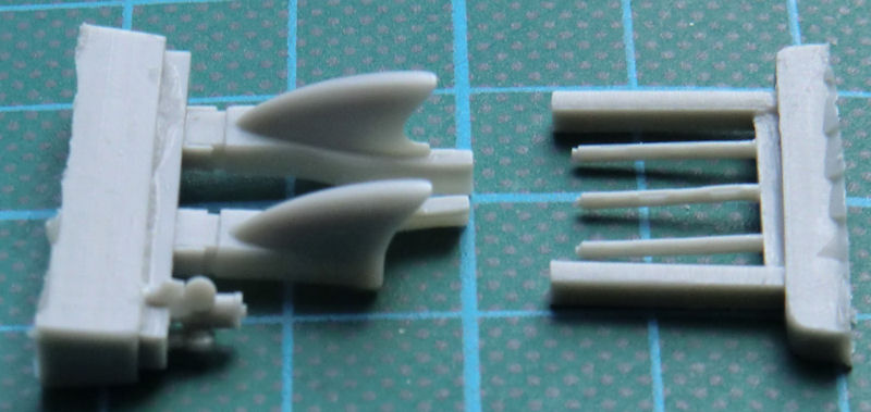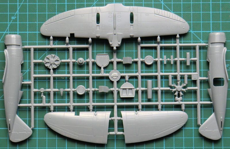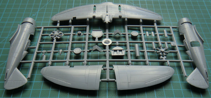 Die Short-Run-Teile sind z.T. überraschend filigran und es gibt recht feine Strukturen. Mir gefällt insbesondere der Rumpf. Leider hat man die Tragflächen und den Rumpf in überlicher Weise geteilt. Dadurch wird es schwierig, eine scharfe Hinterkante hinzubekommen. Immerhin bestehen die beiden Teile des Höhenleitwerks aus jeweils einem Stück.