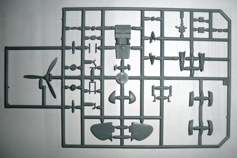 Nun ins Detail: Die dunkelgrauen Spritzrahmen enthalten alle relevanten Teile. Tragflächen, Rumpf und andere Oberflächen sind fein und negativ graviert. Das Cockpit ist ordentlich, ja sogar reichhaltig ausgestattet, denn auch die Seitenwände sind graviert.