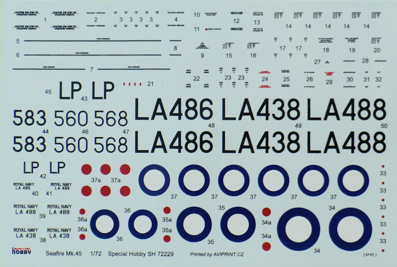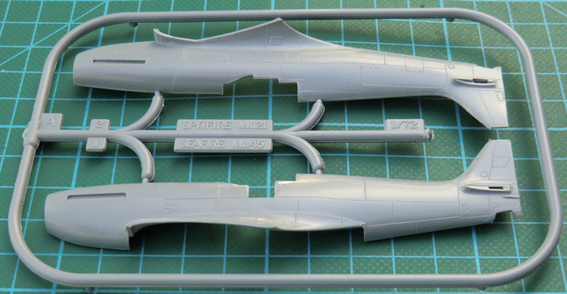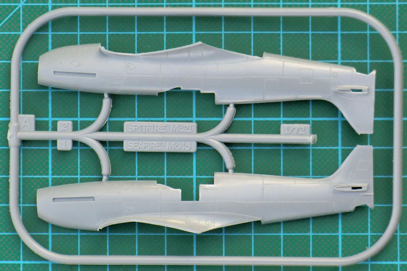 Bausatz: Bei MPM erscheinen derzeit im Label „special hobby“ verschiedene sehr späte Spitfire- und Seafire-Bausätze in 1/72. In einem schönen großen praktischem Stülpkarton befinden sich gut verpackt vier hellgraue Spritzgussrahmen mit 142 Teilen, ein Klarsichtrahmen mit 15 Teilen, ein Decalbogen und die Bauanleitung. Letztere war leider bei mir nur unvollständig bedruckt. Das stellt allerdings kein Problem dar, denn auf der Homepage kann man sich die fehlenden Seiten runterladen und dort bekommt man zusätzlich die mehrfarbigen Bemalungsanleitungen.
