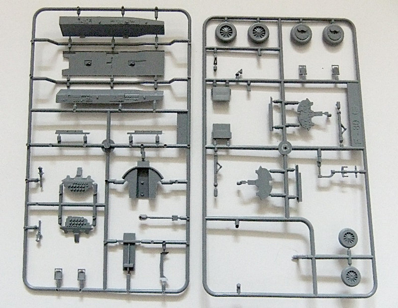 Das Plastik ist insgesamt aber nicht so weich in der Herstellung wie man es sonst von Bausätzen dieser Art gewohnt ist. Es wirkt etwas spröde, so ist bei dem Abtrennen vom Gießast Vorsicht nötig, weil Bruchgefahr bestehen kann.