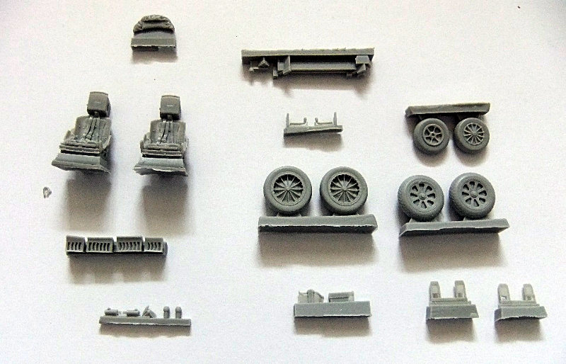 Die sechs grauen Rahmen enthalten knapp 100 Bauteile. Diese werden durch rund 20 Teile aus Resin und einige farbig gestaltete Messingteile für den Cockpitbereich. Dabei fallen einem sofort die liebevoll ausgeformten Sitze aus Kunstharz ins Auge. Überhaupt scheint gerade das Cockpit sehr detailliert ausgeführt, was bei dessen Größe auch voll zur Geltung kommt. Auch die Armaturenbretter sehen fantastisch aus. Und weil wir gerade bei dem Thema sind, wieder einmal ist es den Tschechen gelungen eine große Kabinenhaube schlierenfrei und ohne Mittelnaht zu fertigen.