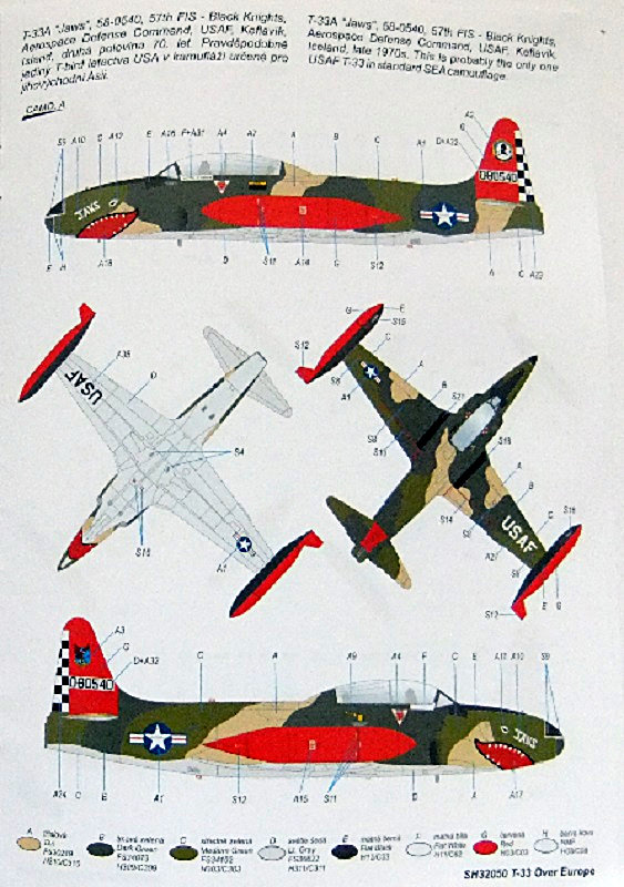 Da wäre erst einmal die T-33 der 57th FIS Black Knights im Süd-Ost-Asien- Anstrich welche auch das Deckelbild des großen Stülpkartons ziert. Stationiert war die Maschine 1970 auf Island.
