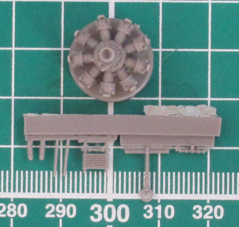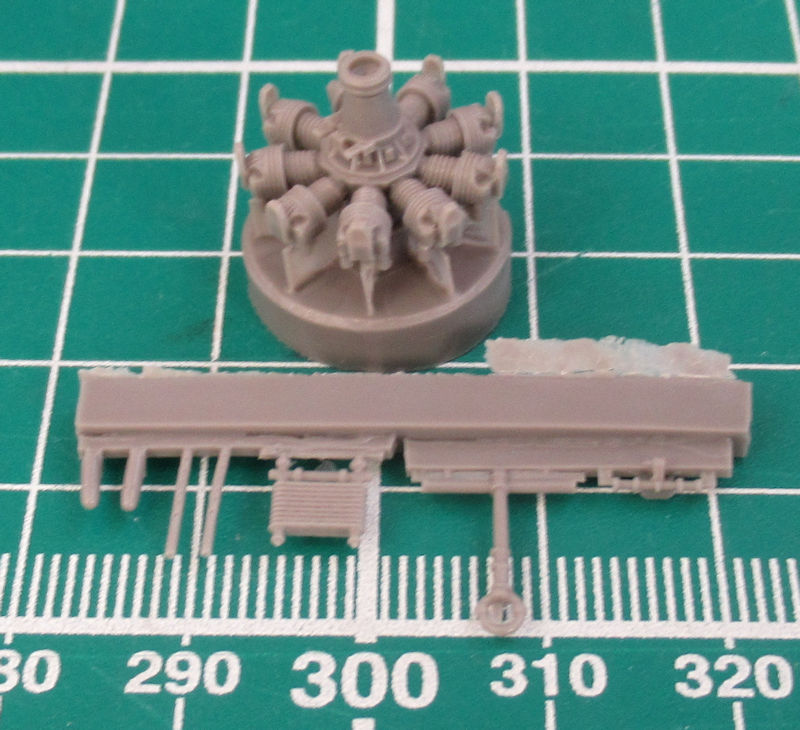 Der Motor sieht recht ordentlich aus. Die Grundbasis ist ein sauber gegossenes Resinteil. Das wird mit einigen Spritzgussteilen ergänzt. Der Abwehrstand des Bordschützen ist sehr gut dargestellt und auch das Abwehr-MG sehr gut getroffen. Als Hilfe für die umfangreiche Verspannung dient ein Plan. Das Material muss dafür selbst hergestellt werden oder entsprechend hergestellt werden.