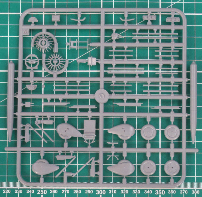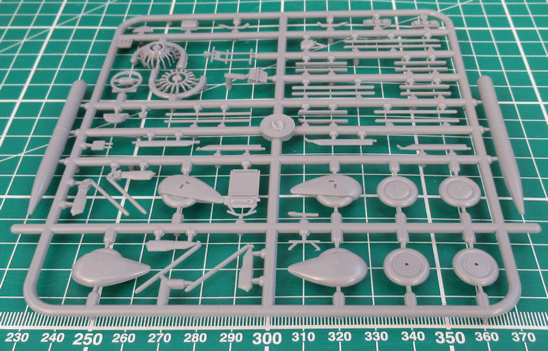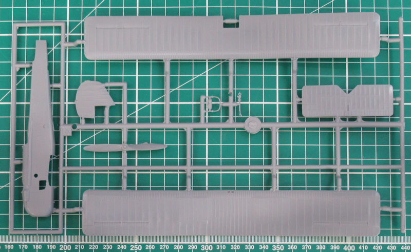 Die Struktur von Tragfläche, Seiten- und Höhenleitwerk sieht sehr gut aus. Es gibt auch scharfe Hinterkanten. Aber man vermisst ordentliche Locations für die wenigen Streben mit denen die obere Tragfläche auf die untere geklebt werden soll. Beim Fahrwerk gibt es auch Alternativteile. Hier hat man verkleidete oder unverkleidete Hauptfahrwerksräder zur Auswahl.