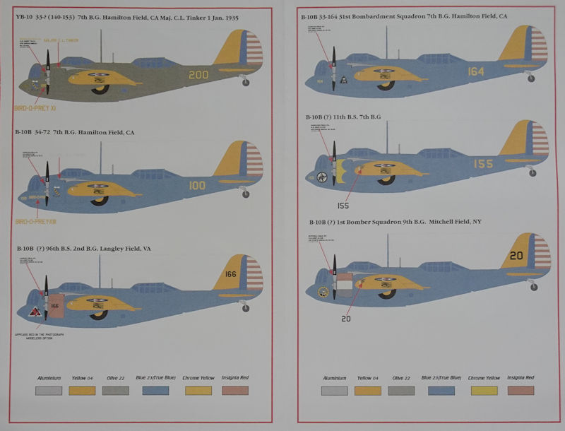 - YB-10, 33-??, gelbe 200, 7.BG USAAC, Hamilton Field, 01. Januar 1935;