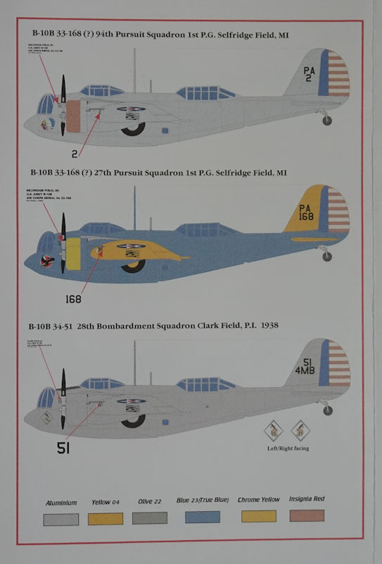 Fazit: Ein sehr gelungener Decalbogen. Allerdings benötigt man dazu den Williams-Kit oder den der Martin B-10B von Azur-FRROMR. Die Exportvarianten haben andere Triebwerksverkleidungen. Sehr empfehlenswert!