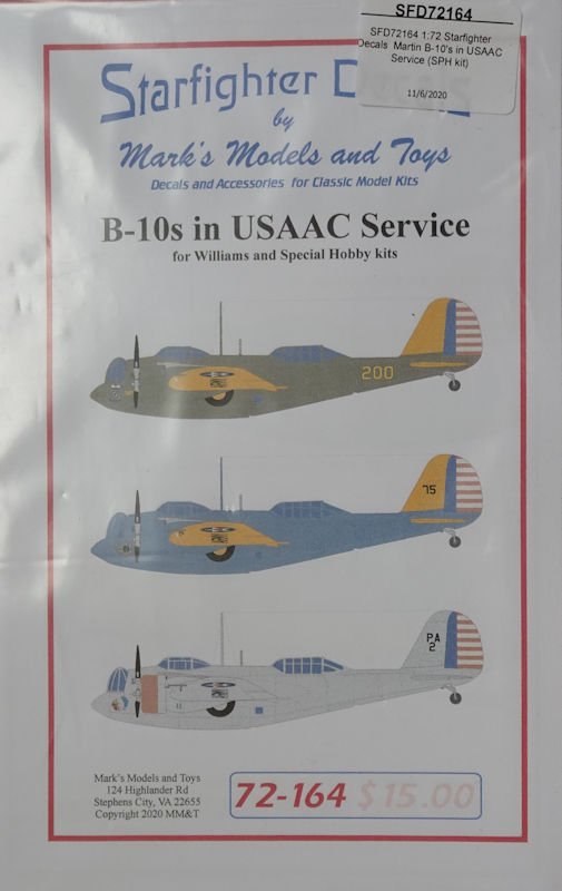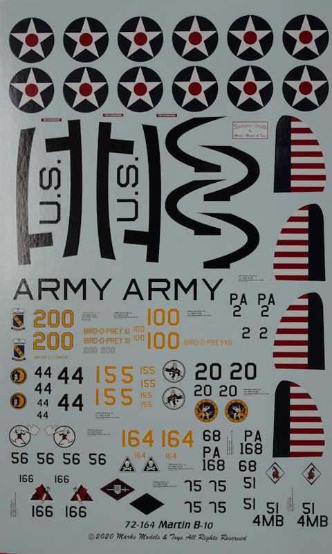 Wer bei seinem Azur-FRROM-Bausatz der Martin B-10 noch nicht "die" Bemalungsvariante gefunden hat oder einen Williams-Kit updaten möchte, der sollte zu diesem Decalsatz von Starfighter Decals in 1/72 greifen.