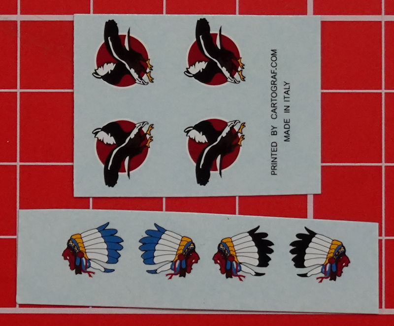 Es gibt hier einen großen Bogen und zwei kleine Bögen. Auf den letzteren findet man die detaillierten Indianerköpfe und andere Wappen. Die Bemalungshinweise sind recht detailliert.