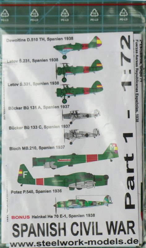 Für die Modellbauer mit Schwerpunktthema Spanischer Bürgerkrieg hat Steelwork Models einen Decalsatz herausgebracht. Es gibt eine schöne mehrfarbige Bauanleitung und Farbhinweise in Englisch und Deutsch.