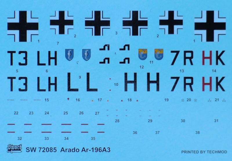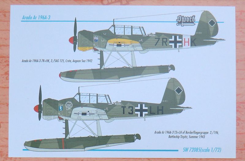 Bausatz: Seit vielen Jahren gibt es in 1/72 nur das Heller-Modell der Ar 196A in Spritzguss. Eigentlich hatte ich mit einem neuen Revell-Bausatz in diesen Maßstab gerechnet, denn man hatte in 1/32 einen tollen Bausatz herausgebracht. Stattdessen hat man nach wie vor den Heller-Bausatz im Programm. Nun hat Sword aus der Tschechischen Republik einen neuen Short-Run-Bausatz in 1/72 herausgebracht.