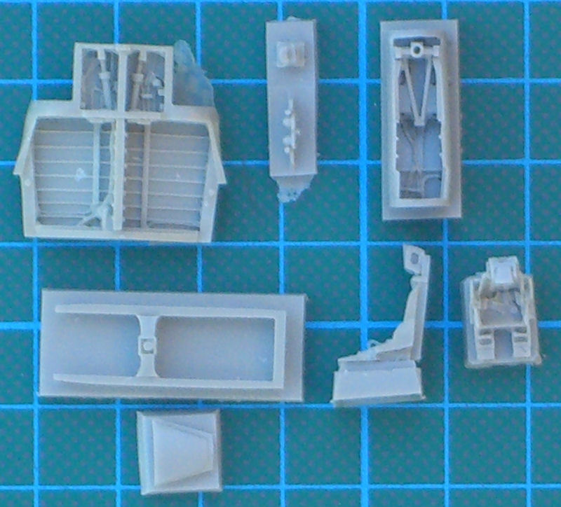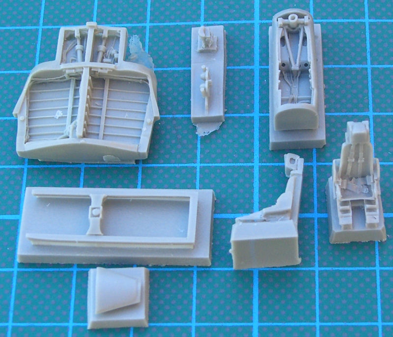 Die Spritzgussteile sind, wie bei Sword üblich, sehr glatt und besitzen feinste versenkte Strukturen. Der Bau beginnt auch hier mit dem Cockpit. Dafür werden die gut detaillierte Wanne mit den Instrumentenbrettern aus Spritzguss verbaut. Bei den Instrumentenbrettern gibt es Alternativteile. Hier ist ein ordentliches Vorbildstudium vor dem Baubeginn nötig. Die Schleudersitze bestehen aus Resin. Nicht vergessen hat man bei Sword den Hinweis auf das Buggewicht. Über die Menge schweigt man sich allerdings aus.