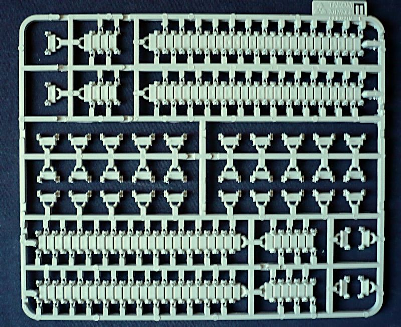 Das Fahrwerk ist umfangreich aufgebaut, die Panzerketten in unterschiedlich langen Segmenten zu montieren. Als Montagehilfe für die oberen Kettenglieder liegt eine Lehre bei.