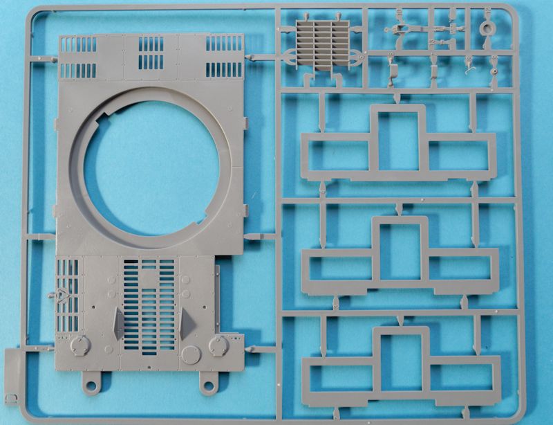 Die raue Gussstruktur der Panzerwanne ist sehr gut wiedergegeben. Der offene Gussturm enthält leider keinerlei Innendetaillierung und auch die Seitenwände des 55 Tonnen schweren Turms sind verhältnismäßig dünn gehalten.