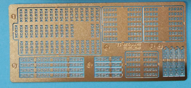 Der Ätzteilebogen enthält die feine Gitterstruktur welche sich unter den Abdeckungen für Hauptmotor, E-Motoren sowie Auspuffe befindet.