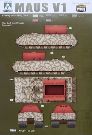 Bemalung: Die Bauanleitung enthält drei Farbversionen die allesamt dem Kummersdorf Prototyp zugeordnet sind. Auf dem Decalbogen sind Markierungen enthalten, die für dieses Fahrzeug nicht benötigt werden. Die Farbangaben beziehen sich auf das Sortiment von Mig.