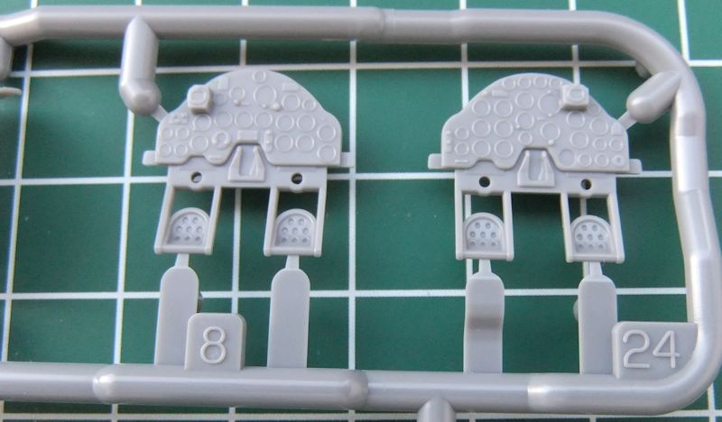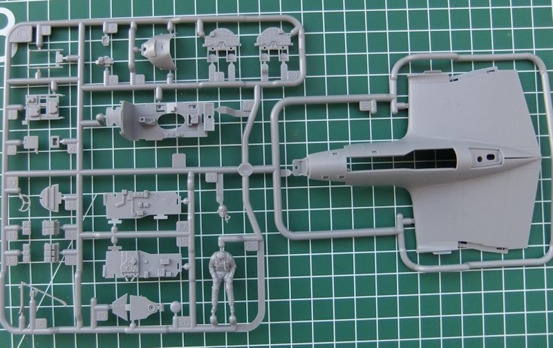 Das Cockpit ist ein Modell für sich und die Unterschiede beider Varianten finden in allen Bereichen ihre Berücksichtigung. (Klasse)! Es sind 18 Teile in Klarsichtmaterial vorhanden. Dazu gehören unterschiedliche Varianten der Kabinenhauben. Je nach Wahl kann das Cockpit mit einer geschlossenen oder offenen Haube präsentiert werden. Bei der "F"-Variante, wurde der Einstieg ins Cockpit mit einer seitlich geöffneten Haube vollzogen.