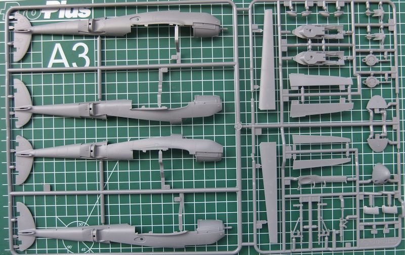 Aber nochmals der Hinweis, ein Spaziergang wird die Montage der Lightning nicht. Die beiden Doppelrümpfe z.B. sind aus mehreren Teilen zusammenzufügen. Und je einer der beiden Propellerspinner besteht aus vier Teilen. Dazu kommen noch zwei schwarze Poly-Cab Hülsen, um die Propeller zu justieren. Die Verwendung von Flüssigkleber, in der Art wie Liquid Poly von Humbrol, wäre zu empfehlen.