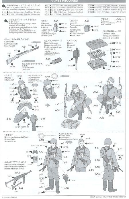 Der Bauplan ist sehr klar und bietet bei einigen Figuren Köpfe mit Stahlhelm oder Schiffchen optional an. Bei den Farben wird natürlich auf das hauseigene Sortiment verwiesen.