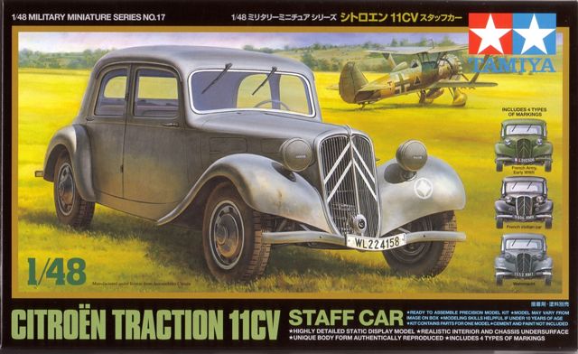 Vorbild: Autos mit Frontantrieb und Monocoque-Rahmen sind heute etwas Alltägliches, in den 1930em jedoch waren sie revolutionäre Neuerungen. Die Produktion des Citroen 11 CV begann 1934 und brachte diese Besonderheit einem breiten Spektrum von Autofahrern nahe. In der Umgangssprache nannte man ihn den "Traction Avant" oder auch "Traction" nach dem Französischen Ausdruck für Frontantrieb; es gab ihn als 7CV und 15CV Varianten ebenso wie den in großem Umfang hergestellten 11 CV (CV bezieht sich auf "chevaux vapeur", eine Französische Einheit von Pferdestärken, die für die Kraftfahrzeugsteuer verwendet wurde).