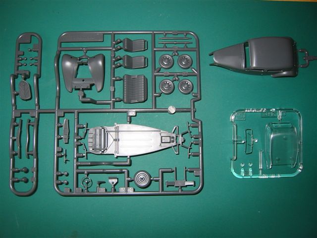 Der Bausatz erinnert etwas an das Heller Modell im Maßstab 1/43, ist aber insgesamt feiner und natürlich im "richtigen" Maßstab. Sehr gut gefällt mir die ausstellbare Frontscheibe, die man aber vielleicht durch dünneres Material darstellen sollte (oder z.B. durch den Haulersatz). Abziehbilder liegen für mehrere deutsche und französische Fahrzeuge bei, allerdings sind hier unzählige Varianten möglich. Ich bin schon gespannt was sich die Modellbauer damit alles einfallen lassen. Ich werde wohl ein Luftwaffenfahrzeug daraus bauen, vielleicht ein schwarzes....