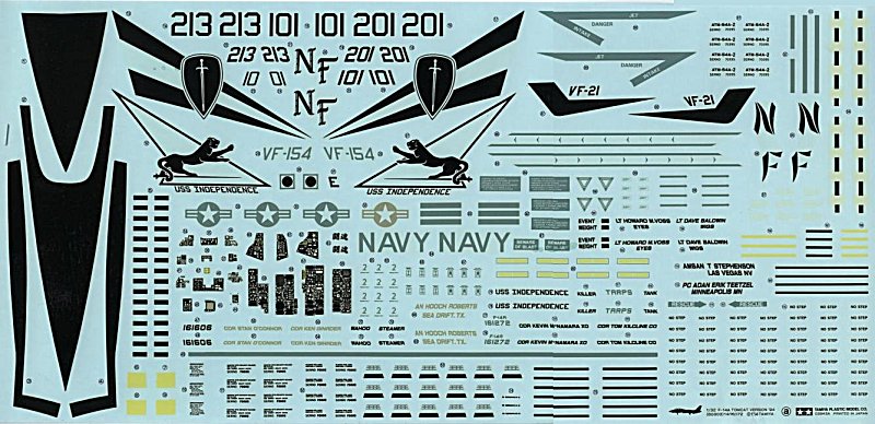 Das Modell: Um einen Kater im großen Maßstab zu bauen, bietet der Markt zur Zeit nur zwei Wahlmöglichkeiten an. Da wären einerseits der Revellbausatz und der hier mir vorliegende Kit von Tamiya. Dieser Bausatz kam erstmals 1980 auf den Markt, wie auf einigen Spritzlingen ersichtlich. Bei der 1994er Wiederauflage wurden einige Teile wie z.B. der Rumpf modifiziert. Aktuell ist dieser Bausatz als "Black Knights" Nr. 60313 auf dem Markt. Hier kam noch ein neuer Spritzling dazu, welcher die Bewaffnung ergänzt, hauptsächlich für die zuletzt eingesetzte Rolle als Bomber.