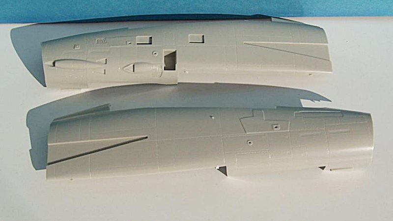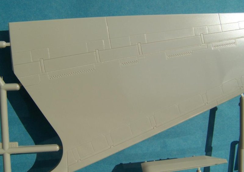 Wer die F-4 Phantom II oder die F-15E Strike Eagle Bausätze aus dem gleichen Hause kennt, wird bei diesem Kit definitiv enttäuscht sein. Denn selbst nach der Überarbeitung kann der Bausatz sein hohes Grundalter nicht verleugnen. Vieles ist heute nicht mehr zeitgemäß, gerade auch deshalb, weil der Bausatz durch seinen hohen Preis eher schon die Gruppe der fortgeschrittenen Modellbauer anspricht. Und die finden einiges, fast schon kurioses, wie die Mischung von erhabenen und versenkten Gravuren, ein sehr einfaches Cockpit, welches mit Decals dargestellt werden soll und auch zum Teil veraltete Lenkwaffen wie die AIM-9D Sidewinder, welche schon lange nicht mehr von der US Navy eingesetzt werden. Die Gravuren zählen mit Abstand zu den größten Fehlern des Modells, da sie doch sehr viel Arbeit zur Korrektur verlangen werden. Hier ist sehr gutes Vorbildmaterial Voraussetzung, da auch noch die Lage und Vollständigkeit nicht stimmig sind.