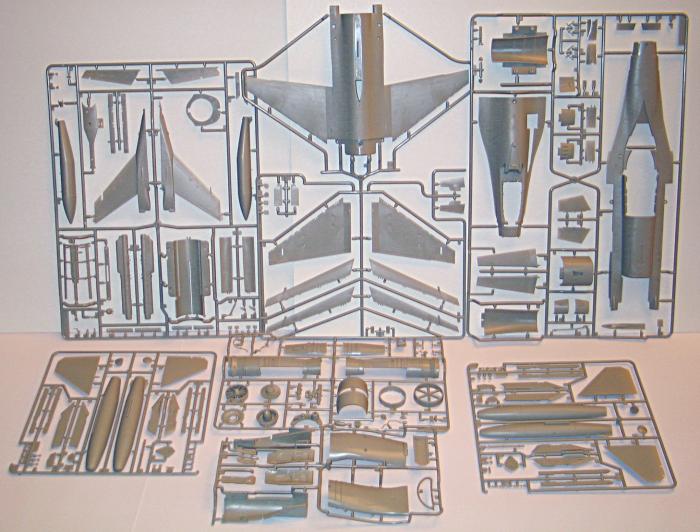 Und mein Warten wurde belohnt. Dies ist ein Bausatz der Superlative. Hier hat Tamiya die Meßlatte im Flugzeugmodellbau, wieder ein ganzes Stück nach oben gelegt. Mal schauen ob andere Modellbaufirmen da nachziehen können. Der Karton ist Randvoll mit hochdetaillierten und filigranen Bauteilen. Ferner liegen den Bausatz eine Reihe von Ätzteilen für das Radar, Leucht/ Flitterverteiler, und die Verschlüsse der Sitzgurte bei. Das Fahrwerk ist komplett aus Metal und muss kaum nachbearbeit werden. Nur kleine Gratstellen müssen abgeschliffen werden. Eine Klare und getönte Cockpithaube liegen den Bausatz bei.