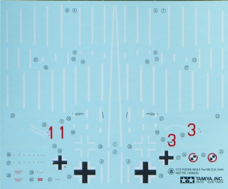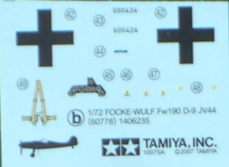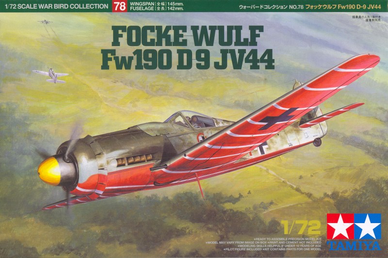 Bausatz: Der Tamiya-Kit der Fw 190D-9 ist in 1:72 seit einigen Jahren auf dem Markt. Hierbei handelt sich um einen sehr schönen Bausatz und passt gut zusammen. Er ist nicht frei von Schwächen, die jedoch nur für Detailfanatiker sichtbar sind. Ich persönlich würde die Räder des Hauptfahrwerks gegen ein paar passende aus dem Zubehörsektor von AIRES und Co. austauschen. Alles in Allem kann ein sehr schönes Modell entstehen.