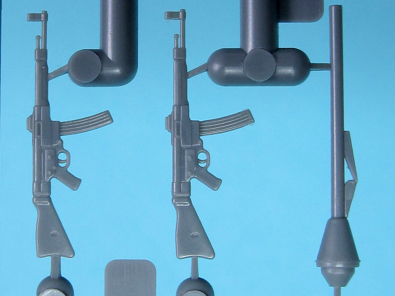 Schön modelliert sind die beiden Figuren, welche einen Fahrzeugkommandanten und dessen Kanonier darstellen...beide lässig stehend und damit für die Ausgestaltung des Fahrzeuges selbst zwar nur bedingt, für den Dioramenbau aber auf jeden Fall brauchbar.
