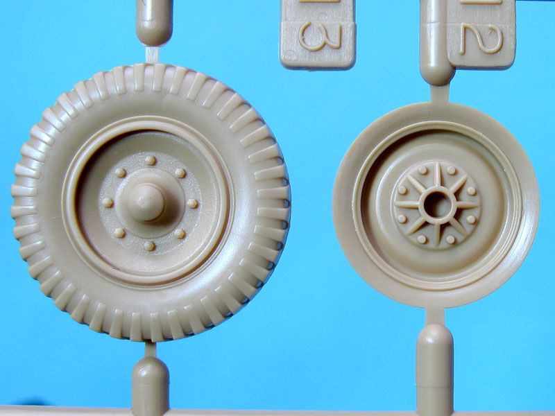 Die Detailierung der Oberflächen ist sehr gut gelungen, Oberteil der Motorhaube und obere Seitenwände weisen sogar leichte Strukturen von Walzstahl auf. Bei der Platzierung der Auswerfermarken hat Tamiya ebenfalls vorbildlich gearbeitet, sie liegen fast alle in später nicht sichtbaren Bereichen und bedürfen nur geringfügiger Nacharbeit.