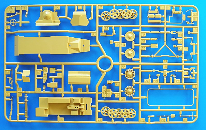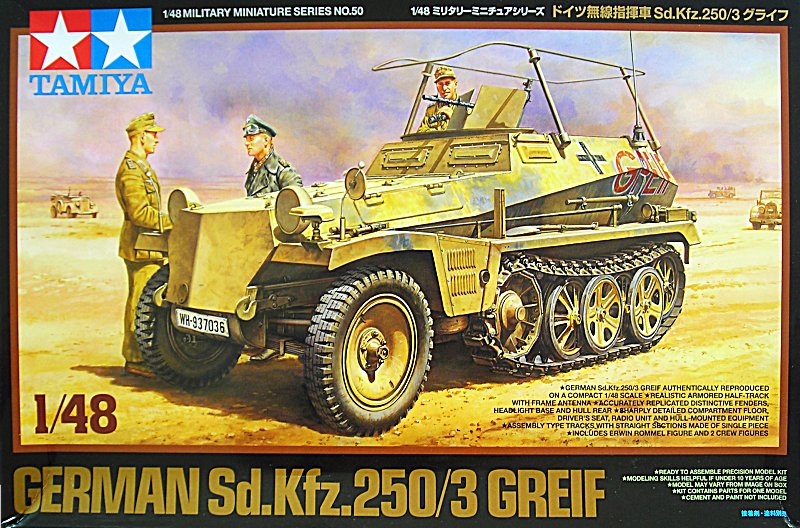 Mit dem Bausatz lässt sich in erster Linie Rommels Führungsfahrzeug "Greif" darstellen, jedoch kann man durch einige Umbauten sicher auch andere Sd.Kfz. 250/3 darstellen (hierzu sind aber gute Quellen von Nöten). Erstes erfreuliches Merkmal ist das relativ kleine Druckgussteil, das fast vollständig im Inneren des Fahrzeugs verschwindet.