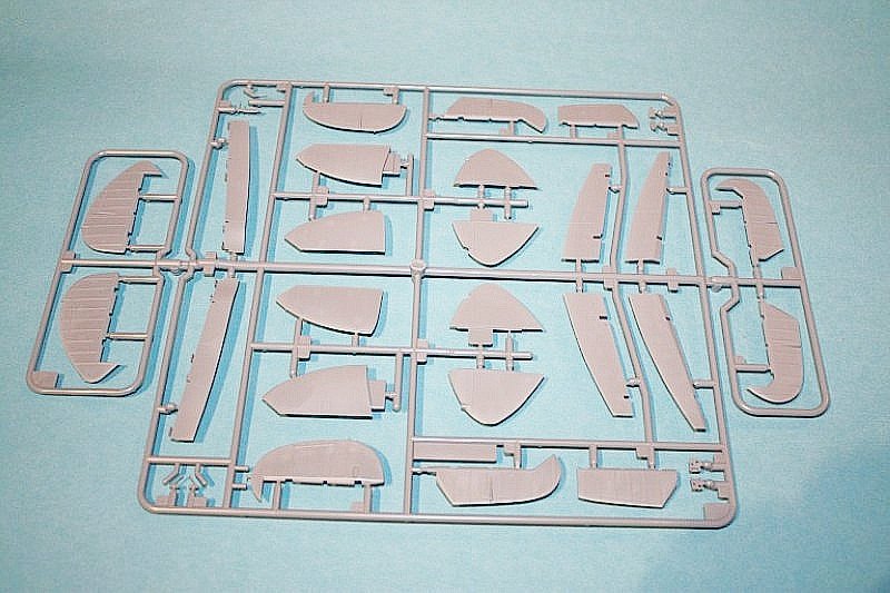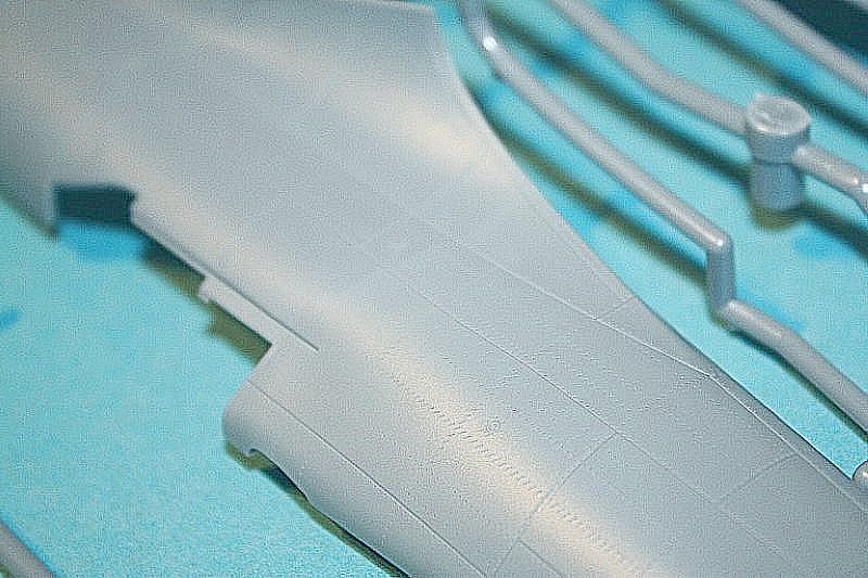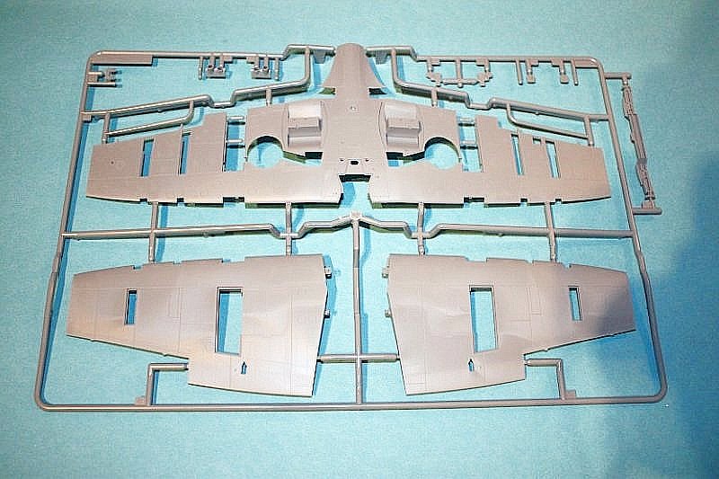 Beim Betrachten der Rumpf- und Flügelteile fällt einem sofort die extrem feine und detaillierte Oberflächengestaltung auf. Gravuren und erhabene Details sind dabei weder zu fein noch zu grob. Eine Lackierung mit einer Airbrush ist natürlich Pflicht. Die Aufteilung des Rumpfes lässt vielfältige Gestaltungsmöglichkeiten offen und für Tamiya noch die Möglichkeit für weitere Varianten.