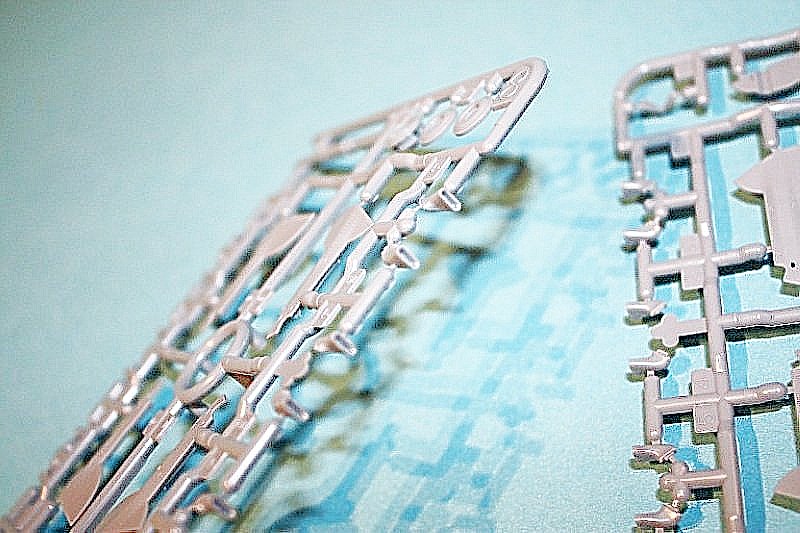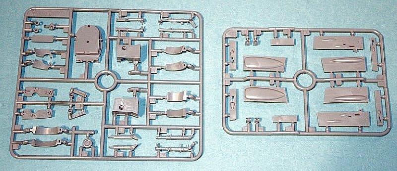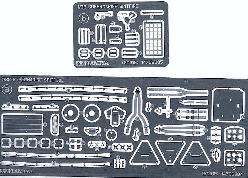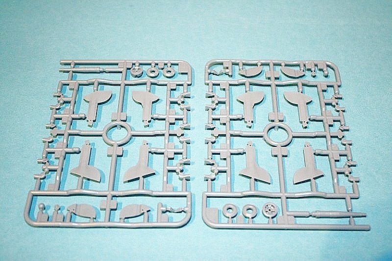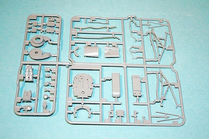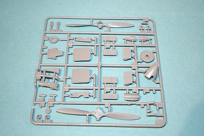 Optionen sind überhaupt das Stichwort, denn die hat der Modellbauer mit diesem Bausatz mehr als genug. So liegen folgende Ausführungen bei: zwei Auspuffanlagen, rund und abgeflacht; zwei Lufteinläufe für den Ladeluftkühler am Bauch; zwei Motorabdeckungen; der Standardwingtip und der "clipped wing" zwei Kanonenabdeckungen; Slipperabwurftank; drei Felgenausführungen, vier- oder Fünfspeichen oder abgedeckt und beide Ausführungen des Höhenleitwerkes. Damit kann man quasi fast jede Mk.IXc oder Mk.XVIc bauen. Und es geht noch weiter, sämtliche Steuerflächen sind separat und auch das Fahrwerk bietet beide Möglichkeiten an, eine Änderung ist auch nach dem Bau noch möglich. Für die Flugdarstellung liegt ein dekorativer Ständer bei.