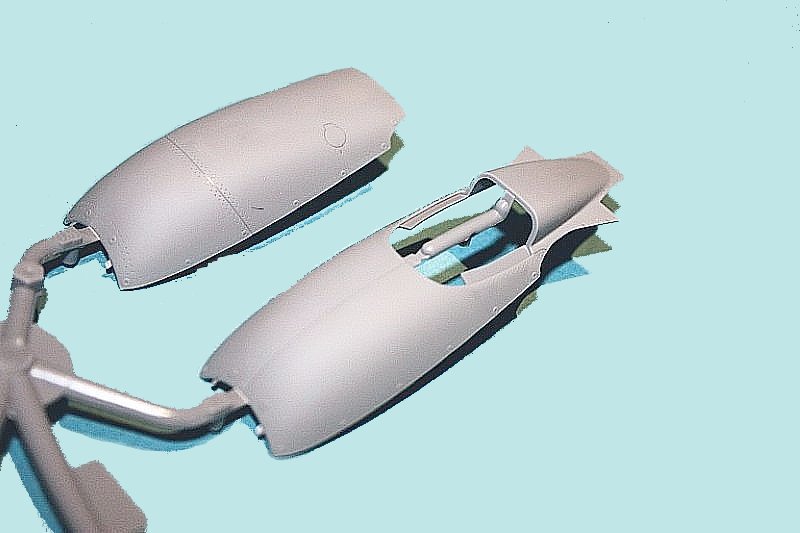 Die Motorenabdeckung sind alle samt separat und geben somit den Blick frei auf den natürlich im Kit enthaltenen Merlinmotor und die Aggregate drumherum. Mittels der Magnete lassen sich die vorbildgerecht dünnen "Bleche" dabei abnehmen oder wieder montieren. Man muss sich also nicht für eine Darstellung im Modell entscheiden.