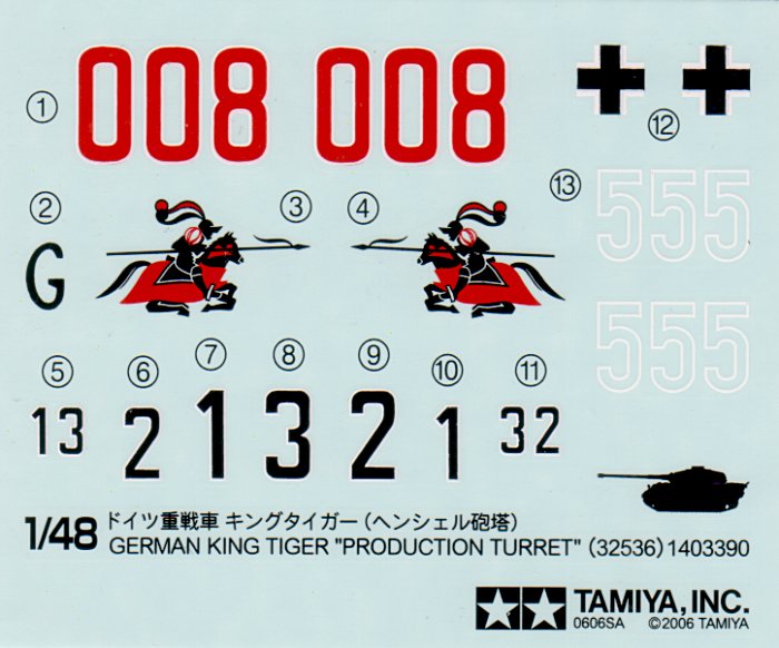 Bausatz: Wie immer präsentiert sich der Bausatz im beigefarbenen Tamiyamaterial. Die Abspritzung ist Tamiya Qualität und lässt nichts zu wünschen übrig. Die größe des Fahrzeugs wird bei den 1/48 Modellen meist erst beim Vergleich mit anderen Modellen (seinen es Flugzeuge oder andere Fahrzeuge) deutlich. Hier wartet ein schöner Brocken auf den Modellbauer. Einige Merkmale des Originals sind natürlich stark vereinfacht dargestellet, aber dafür gibt es bereits Ersatz bei Zuebehörherstellern. Selbstverständlich liegt auch wieder eine Metallwanne bei (hier ohne Abbildung). Der kleine Decalbogen erlaubt die Darstellung von 3 Fahrzeugen (2 ohne eins mit Zimmerit).