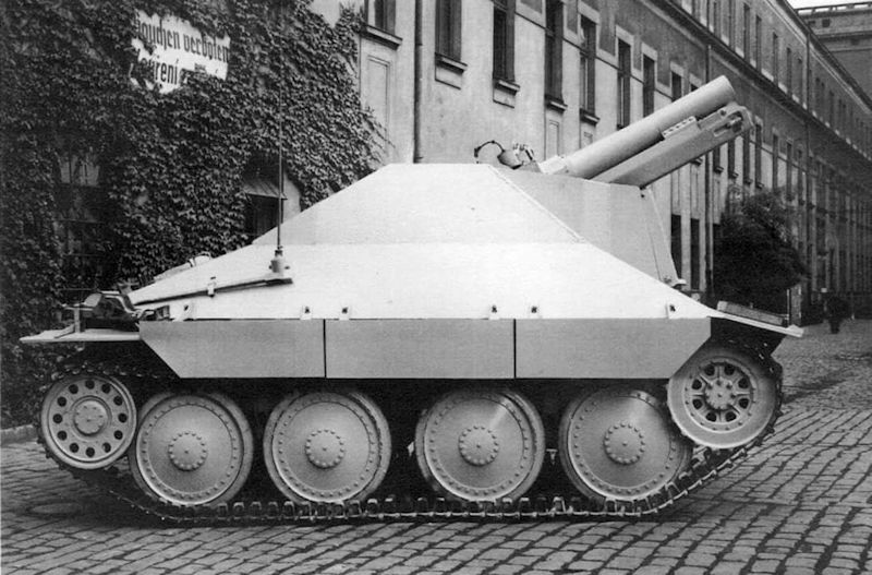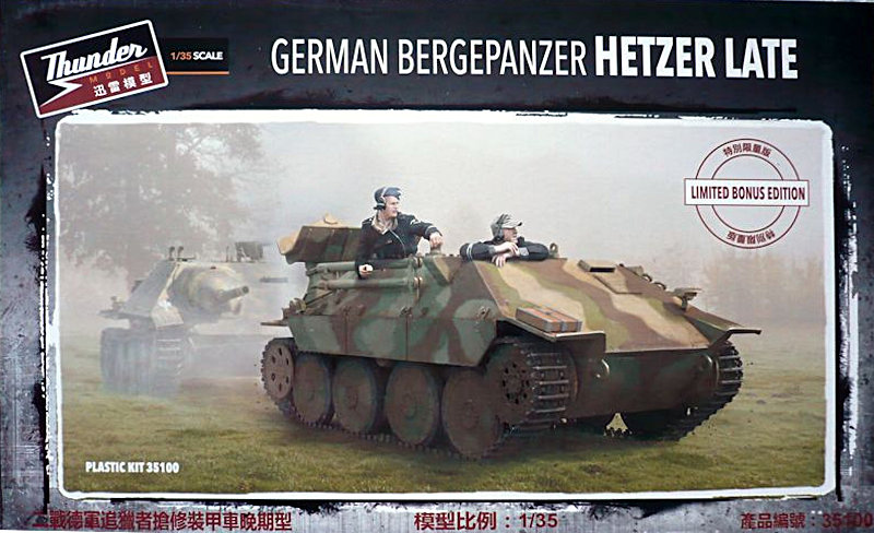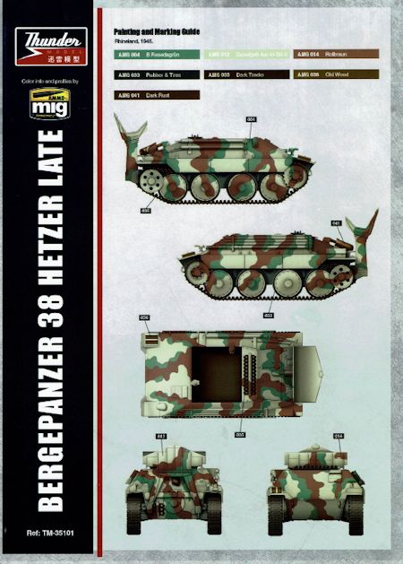 Vorbild: Der Jagdpanzer 38(t) "Hetzer" war ein leichter Jagdpanzer, aufgebaut auf dem Chassis des Panzerkampfwagens 38(t). Er wurde von der deutschen Wehrmacht im Zweiten Weltkrieg von 1944 bis 1945 als Sd.Kfz.138/2 gebaut. Zum Jagdpanzer " Hetzer" gab es noch insgesamt 170 Bergepanzer 38 die durch BMM (Praga/CKD) produziert wurden. Sie basierten auf den Modellen "Hetzer" und Pz.Kpfw.38(t). Die Bergepanzer 38 hatten gegenüber dem Jagdpanzer 38 einen etwas niedrigeren Aufbau mit einer durchgehenden Stirnwand. Die Fahrzeuge waren oben offen und hatten den auch bei anderen Bergefahrzeugen eingesetzten 2 t Hilfskran, der zerlegt mitgeführt wurde, dabei. Im Inneren des Bergepanzers war eine 5 t Seilwinde eingebaut. Die Besatzung bestand aus vier Mann, als Selbstverteidigungswaffe wurde ein MG34 mitgeführt. Erwähnenswert wären noch die Varianten der Selbstfahrlafette s.IG.33/2 und das Experimentalunikum Bergepanzer 38 mit montierter 20mm Flak 38.