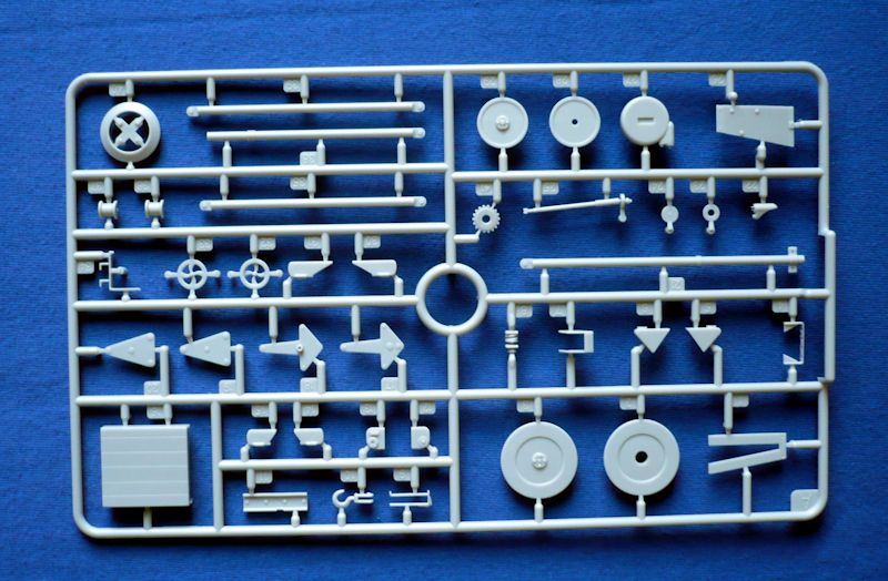 Bausatz: Im Gegensatz zu anderen Herstellern mit ihren prall gefüllten Kartons fällt auf, dass hier nicht viel für die Restekiste abfallen wird und dementsprechend der Inhalt effizienter ausfällt. Das tut der Qualität und Detailtreue keinen Abbruch. Der Bausatz verfügt über sauber in hellgrau gespritzte Plastikteile verteilt auf sieben Spritzrahmen, vier Bögen Ätzteile, ein fertig koloriertes Ätzteil mit Instrumentenuhren, Kupferdraht, Garn sowie in Resin gegossene Schleppösen. Über Abziehbilder verfügt dieser Bausatz nicht.