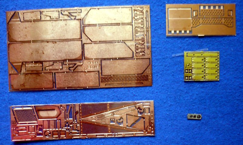 Die vier Ätzteilbögen dienen wie immer der Ausgestaltung filigraner Beschläge, Kotflügelblechen, den Seitenschürzen und Grillgittern. Hier kann teilweise jeder selbst entscheiden ob das Plastikteil belassen wird oder durch ein PE-Teil ersetzt wird.