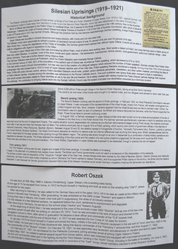 Eine direkte Bauanleitung ist nicht enthalten. Bei den wenigen Teilen ist der Zusammenbau aber selbsterklärend. Die Vorbildinformationen sind zwar nur vom polnischen Wikipedia ins Englische übersetzt, aber immerhin wird dem Modellbauer dadurch überhaupt etwas an Referenzmaterial gegeben, da es im Deutschen zu Robert Oszek kaum etwas gibt. Angaben zur Bemalung gibt es keine, hier muss wohl die bemalte Figur des Kartons bzw. auf der Website des Herstellers genügen.