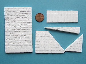 Die Teile sind typisch für diese Art Material. Es gibt fast überall etwas Grat, den man aber sehr leicht entfernen kann. Die Rückseite ist auch nicht 100% plan und muss dort, wo Teile aufeinander stoßen etwas geglättet werden. Das kann man aber gut mit einem Schleifklotz und 80er-120er Sandpapier aus dem Baumarkt erledigen. Verkleben kann man z.B. mit Weißleim (auch aus dem Baumarkt, sonst wird es teuer. Der Farbgebung sind dann keine grenzen gesetzt, man kann aber den Karton als Inspiration benutzen (oder auch die Fotos unten).